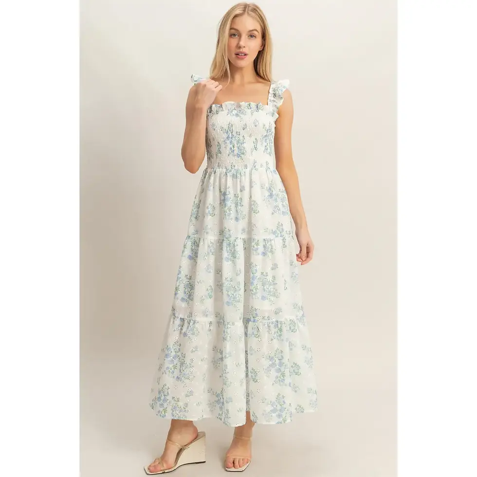 Smocked Floral Ruffle Strap Dress